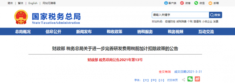 代理记账公司:科技创新是强国之本,我国对于企业研发创新一直以来都是采取大力支持的态度,近日,为激励企业加大研发投入,支持科技创新,财政部、国家税务总局发布了《关于进一步完善研发费用税前加计扣除政策的公告》。